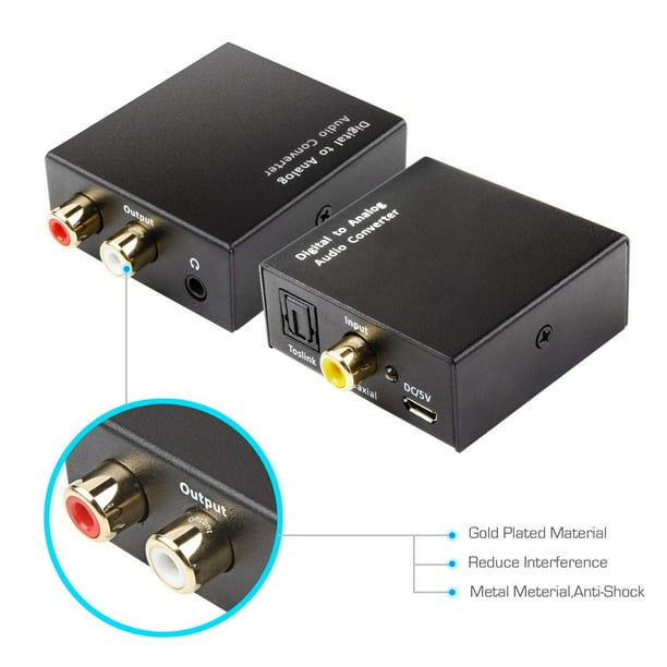 Digital to Analog Audio Converter Box Adapter - Converts ... from i5.walmartimages.com You'll receive email and feed alerts when new items rca to spdif digital to analog 3.5mm aux for amplifier soundbar speaker hdtv. Spdif koaxial digital adaptor audio cable (3.5 mm. Frequent special offers and discounts up to 70% off for all products! If i splice a 3.5mm aux cable together with a 2 pin spdif cable and plug one end into a gtx 260 and the other into the computer's line out or headphone. Think how jealous you're friends will be when you tell them you got your spdif to aux audio cable on aliexpress. Optical coaxial digital to analog audio converter rca aux adapter jack 3.5mm xy. Xiaomi spdif digital coaxial audio cable 3.5mm male to rca bought at store www.gearbest.com. So this cable converts digital to analog ?